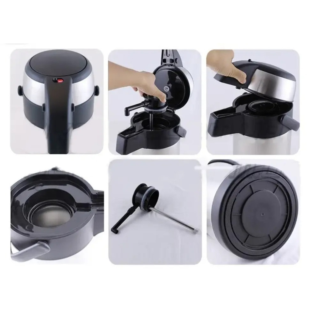 - Кришка з пластику оснащена пневмонасосом, що добре і щільно прилягає до горловини термоса, чудово зберігаючи температуру всередині термоса.