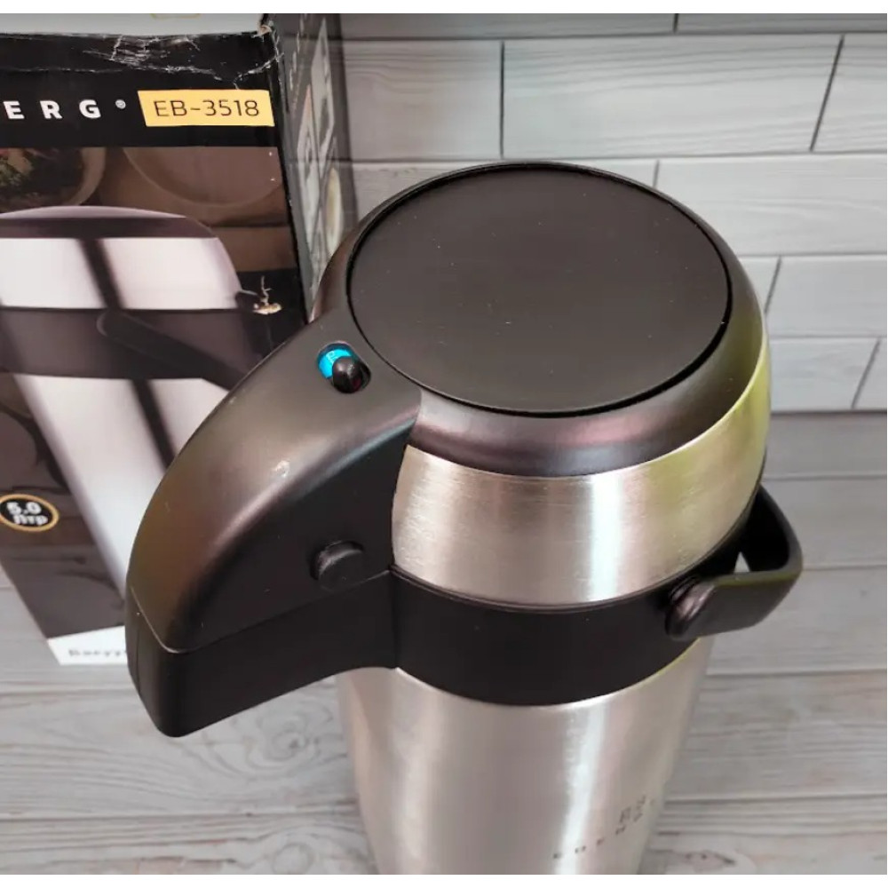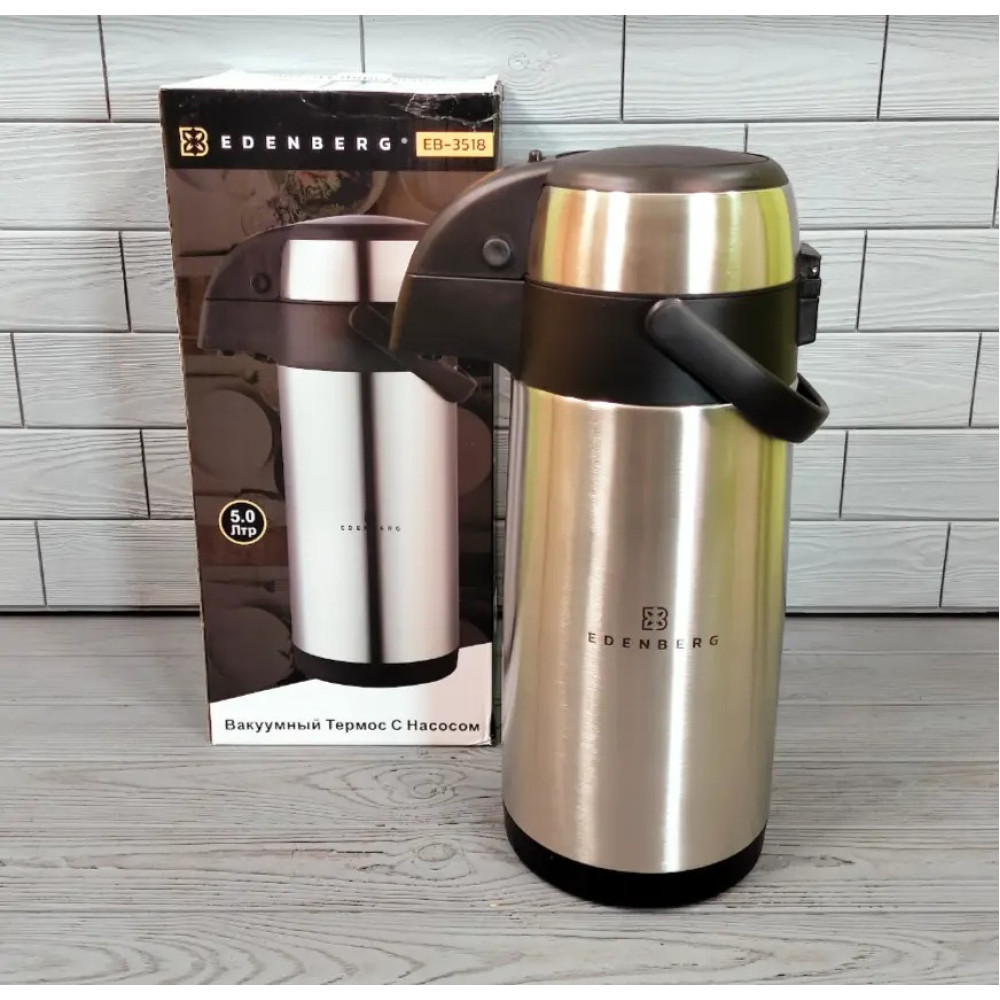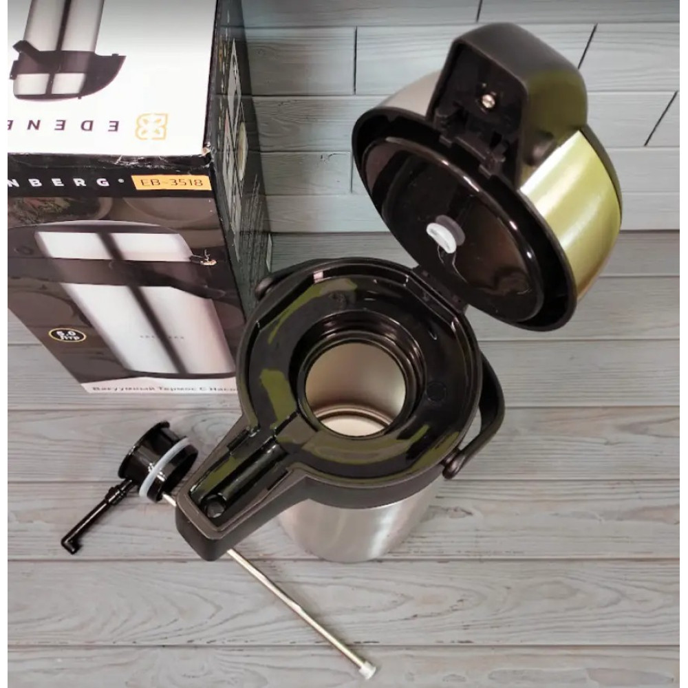 Помповий термос Edenberg EB-3518 виготовлений зі сталі, має високу міцність до перепадів температури. Якісне та надійне виготовлення термоса з помпою набагато відрізняється від дешевших моделей. На кришці є рухома ручка, завдяки якій легко та зручно транспортувати термос.