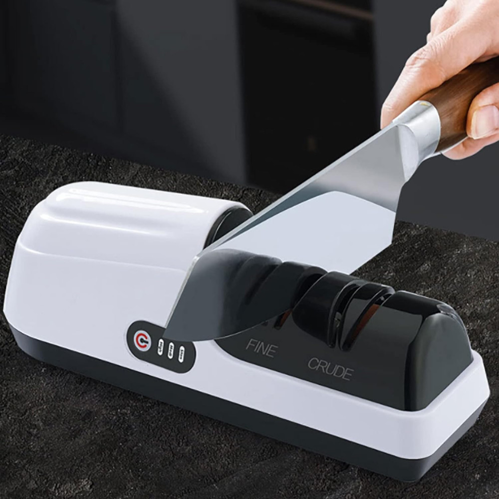 Ідеально підходить для різних ножів: електрична точила для ножів має унікальну функцію вибору трьох швидкостей, яка адаптується до різних типів ножів та вибирає відповідну передачу в залежності від товщини ножів.