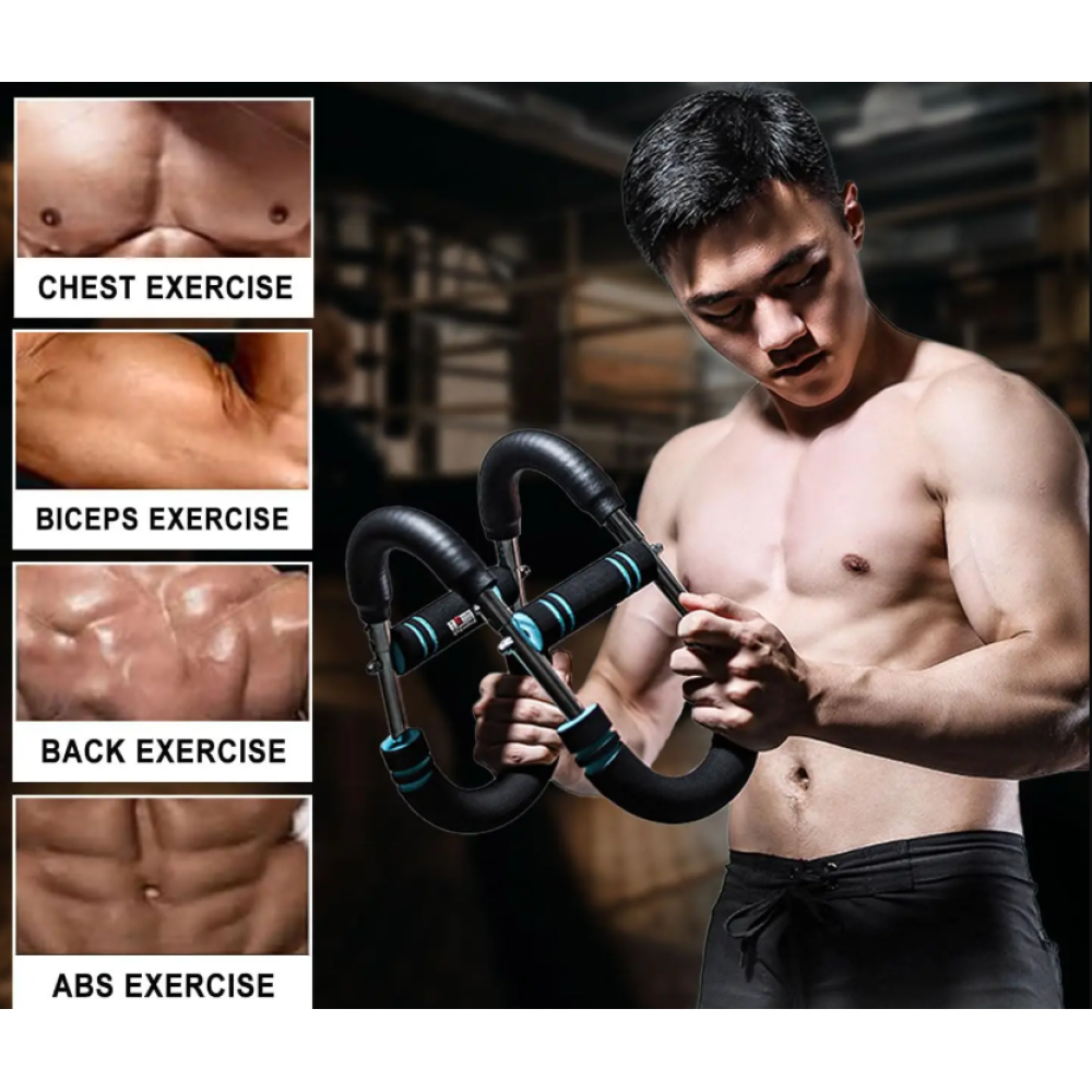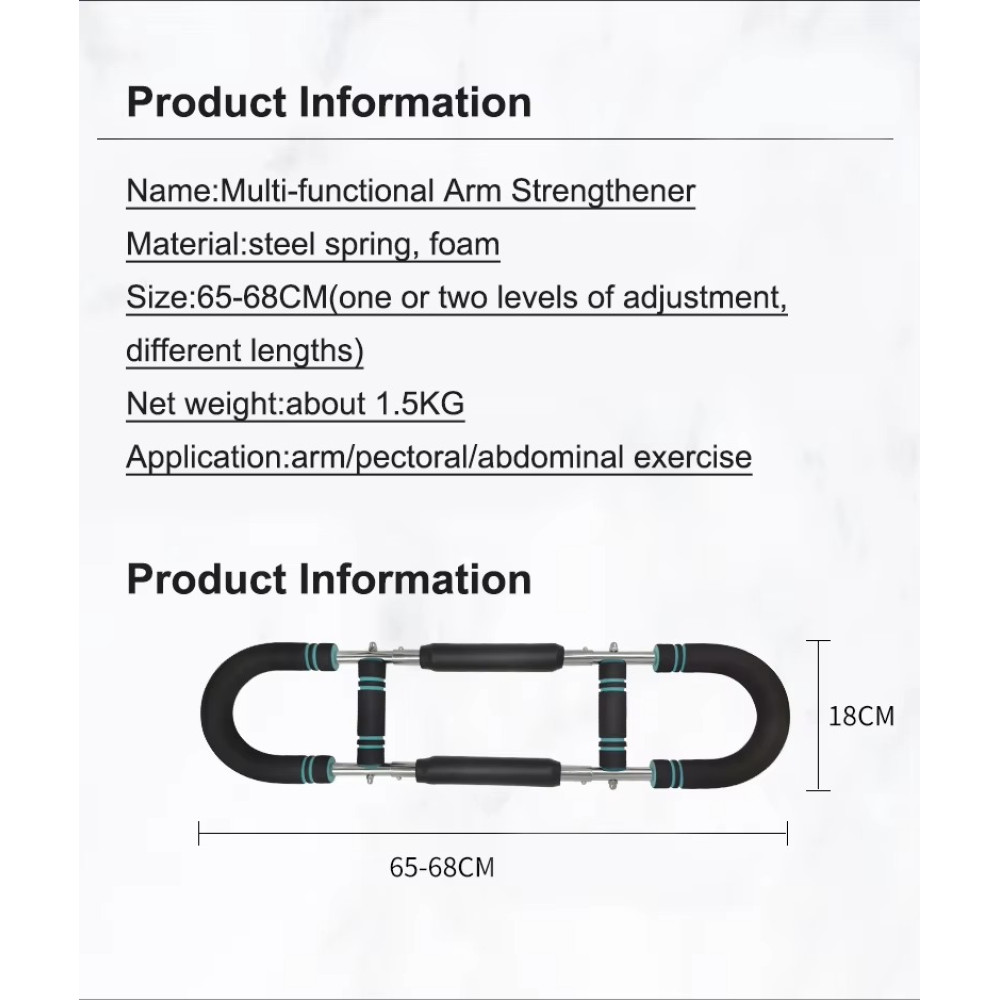 Компактний і міцний силовий тренажер підходить для тренування м'язів рук, грудей, спини і плечей. Виготовлений зі сталі і м'якої гумової піни для зручності і довговічності. U-подібна рукоятка забезпечує надійний хват, а два рівні регулювання дозволяють вибирати відповідне навантаження — від легкого для новачків до більш інтенсивного для досвідчених спортсменів.