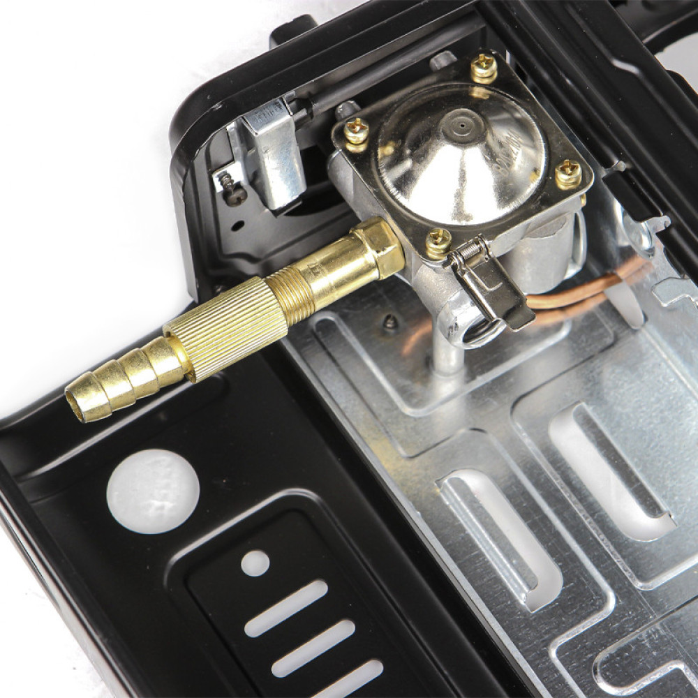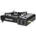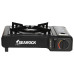 Плита працює як від міні балона-картриджа (бутан-пропан або ізобутаном), так і від стандартного балона (під'єднання через редуктор зі шлангом). Постачається в пластиковому кейсі, який робить транспортування і зберігання плити зручнішою.