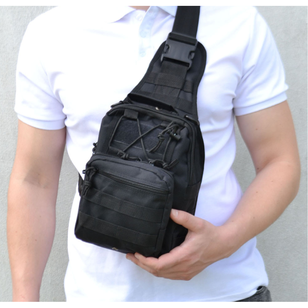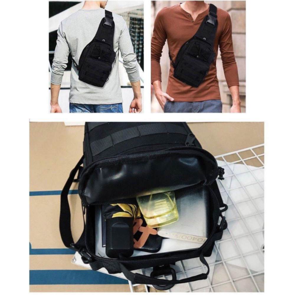 Чоловіча тактична багатофункціональна нагрудна сумка-слінг через плече із системою MOLLE з кордури! Сумка виготовлена з міцної та надійної тканини Кордура 1000Д, зшита дуже міцно, витримує будь-які навантаження. Найпрактичніша сумка на ринку, велика кількість відділень та кишень. Якість 100%