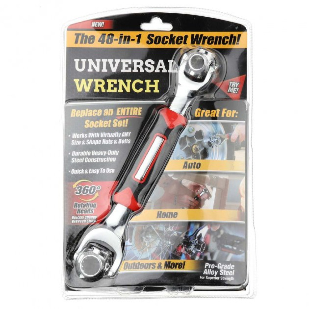 Universal Wrench – це Ваш зручний універсальний інструмент. Він поєднує функції 48 інструментів в одному, замінюючи всі громіздкі важкі гайкові ключі і торцеві головки.