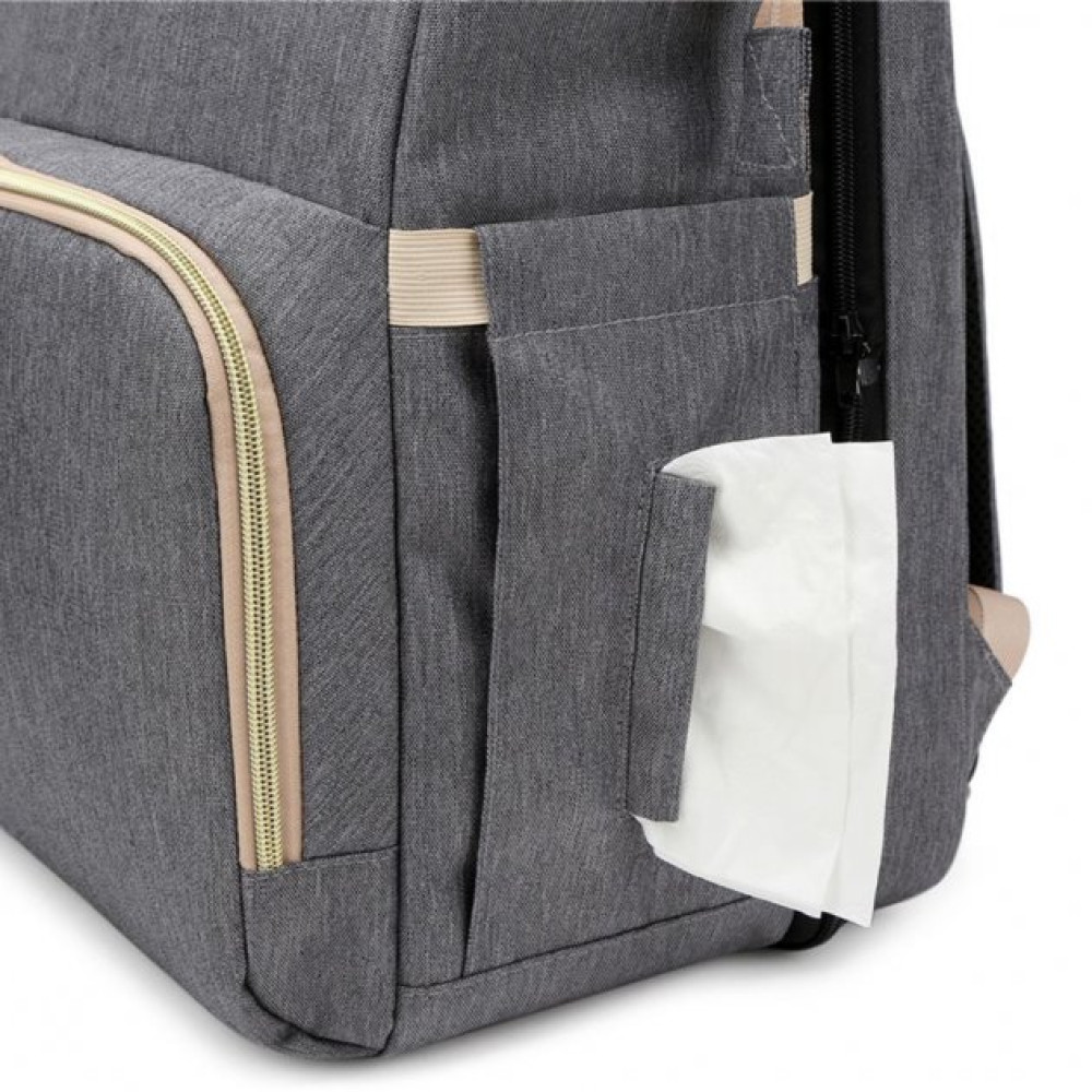 Завдяки стильному зовнішньому вигляду, продуманому функціоналу та організації внутрішнього простору — рюкзак став справжнім улюбленцем багатьох мам. В основному відділенні є безліч кишень для всього того, що може знадобитися на прогулянці або в поїздці з маленькою дитиною. Також є окремий кишеню для сирих речей і використаних підгузків. В передньому відділенні є три термокармана для дитячих пляшечок, які збережуть температуру вмісту на тривалий час. КДва великих бічних кишені дають можливість швидкого доступу до серветок і пляшки з водою.