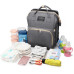 - Відділення: 1 велике основне (4 кишені на резинках, 1 кишеня на замочку, 1 вологостійкий кишеня на замочку), 1 спереду (3 термокармана всередині), 2 кишені з боків (один з швидким доступом до вологих серветок;