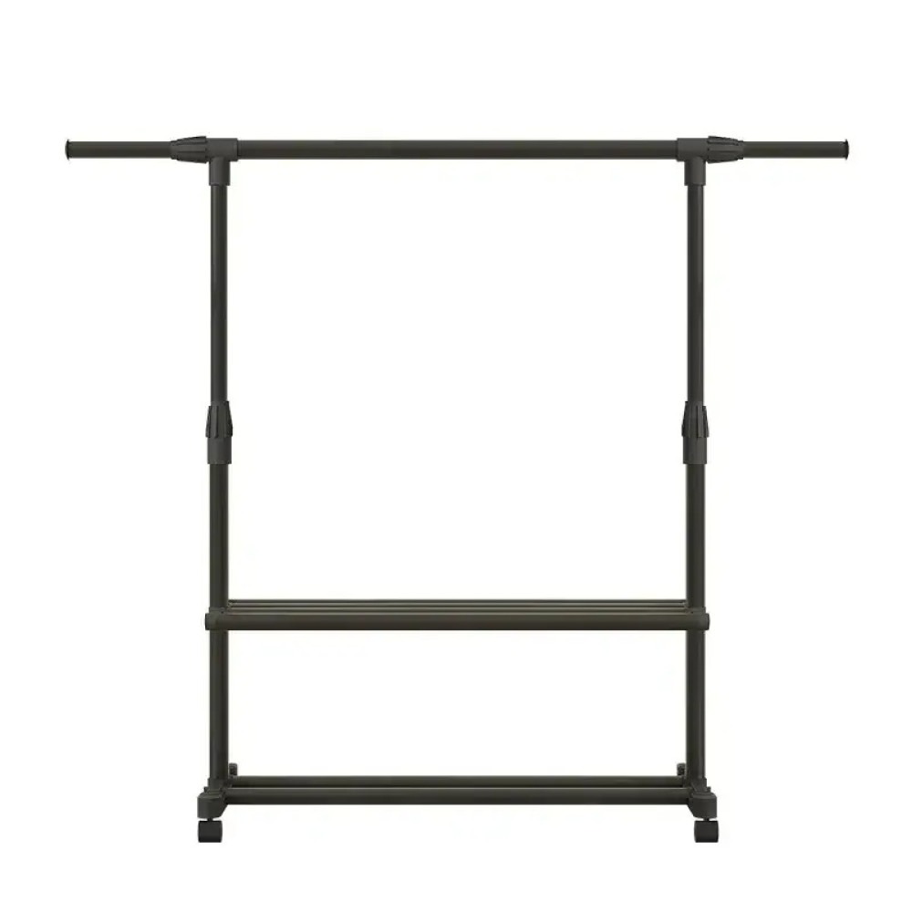 Розмістити речі в маленькій квартирі - справа непроста, але подвійна вішалка з полицями чудово впорається з цим завданням! Пересувна стійка для одягу заощадить місце в будинку, а на додаткових полицях можна зручно скласти аксесуари та взуття. Розбірна конструкція стійки повністю розбірна. Збирати або розбирати її швидко і дуже просто, для цього не потрібно спеціальних інструментів. Верхні поперечки мають різну висоту, що дозволяє розмістити одяг різної довжини, у тому числі й верхній.