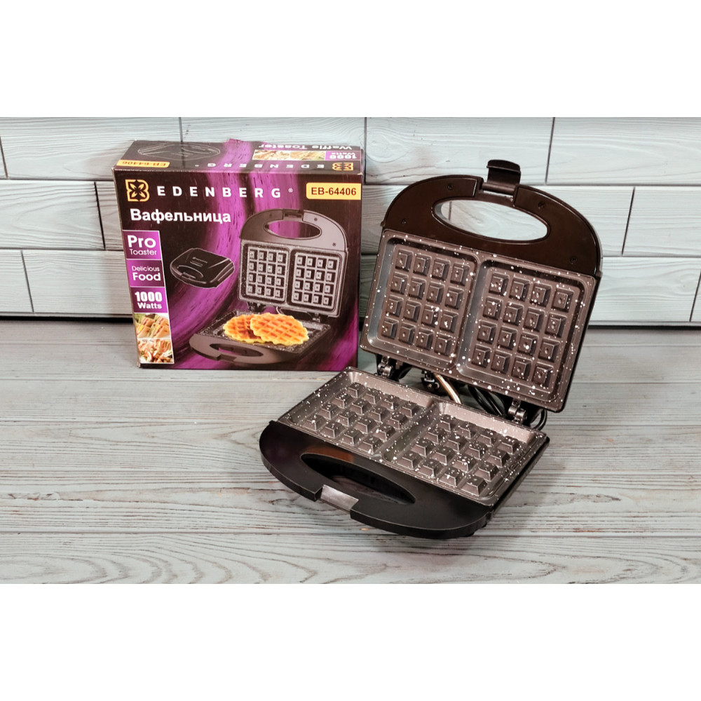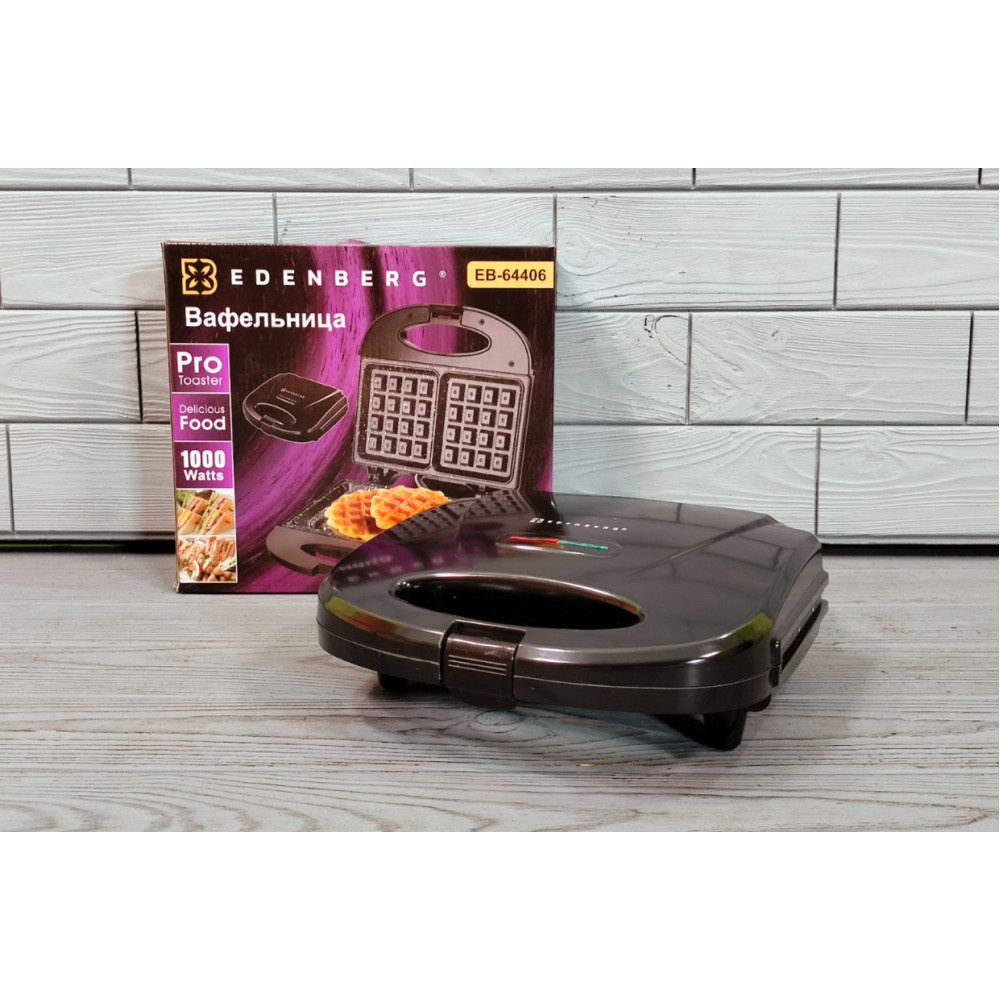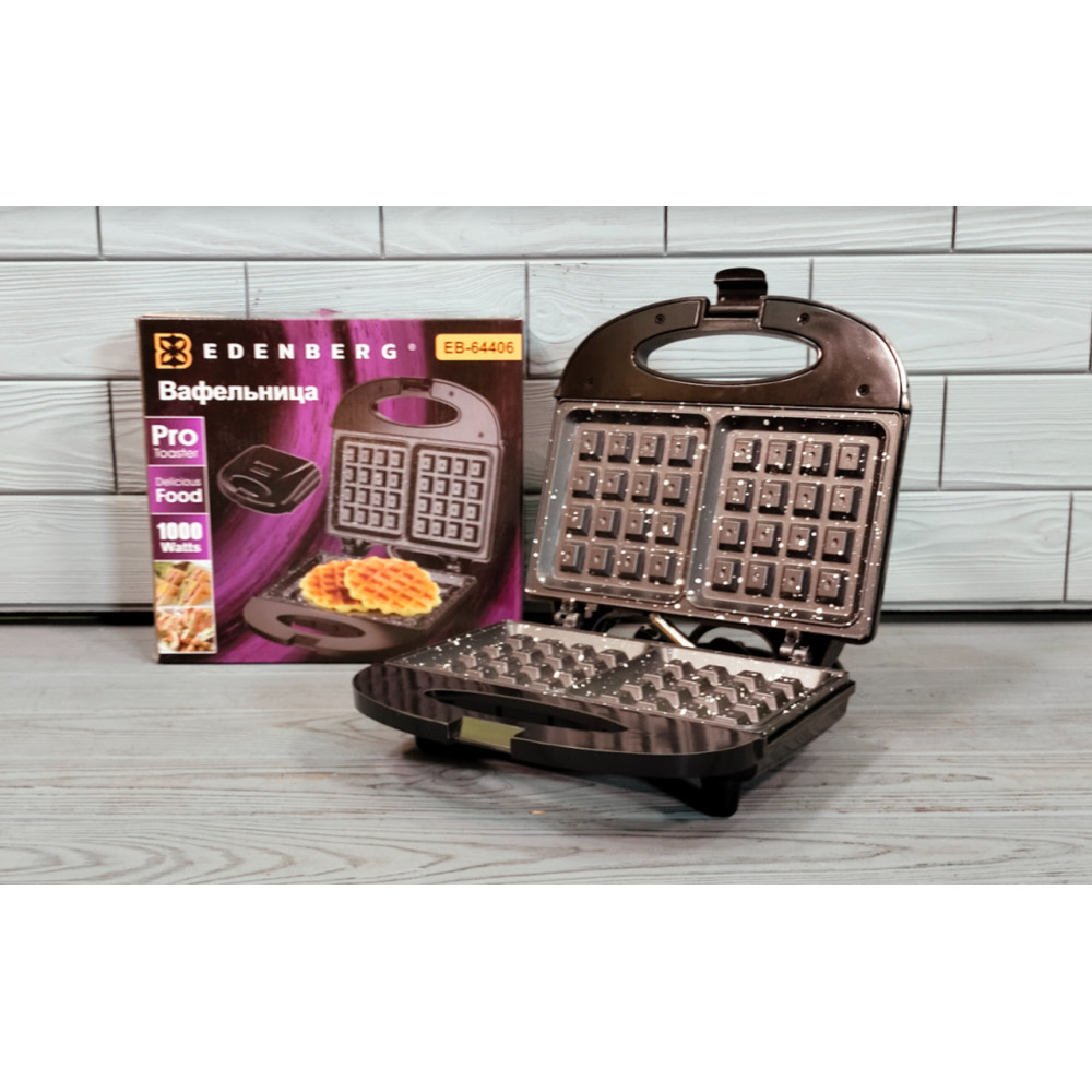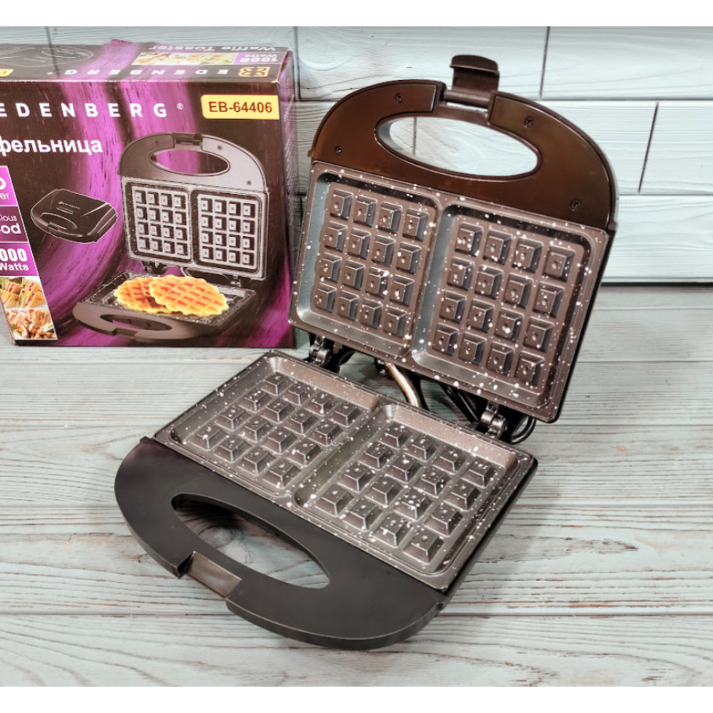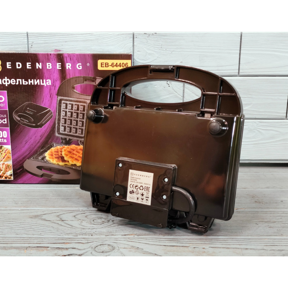 - Вафельниця Edenberg EB-64406 оснащена антипригарним покриттям, тому приготовлені хрусткі вафлі не підгоряють і не прилипають.