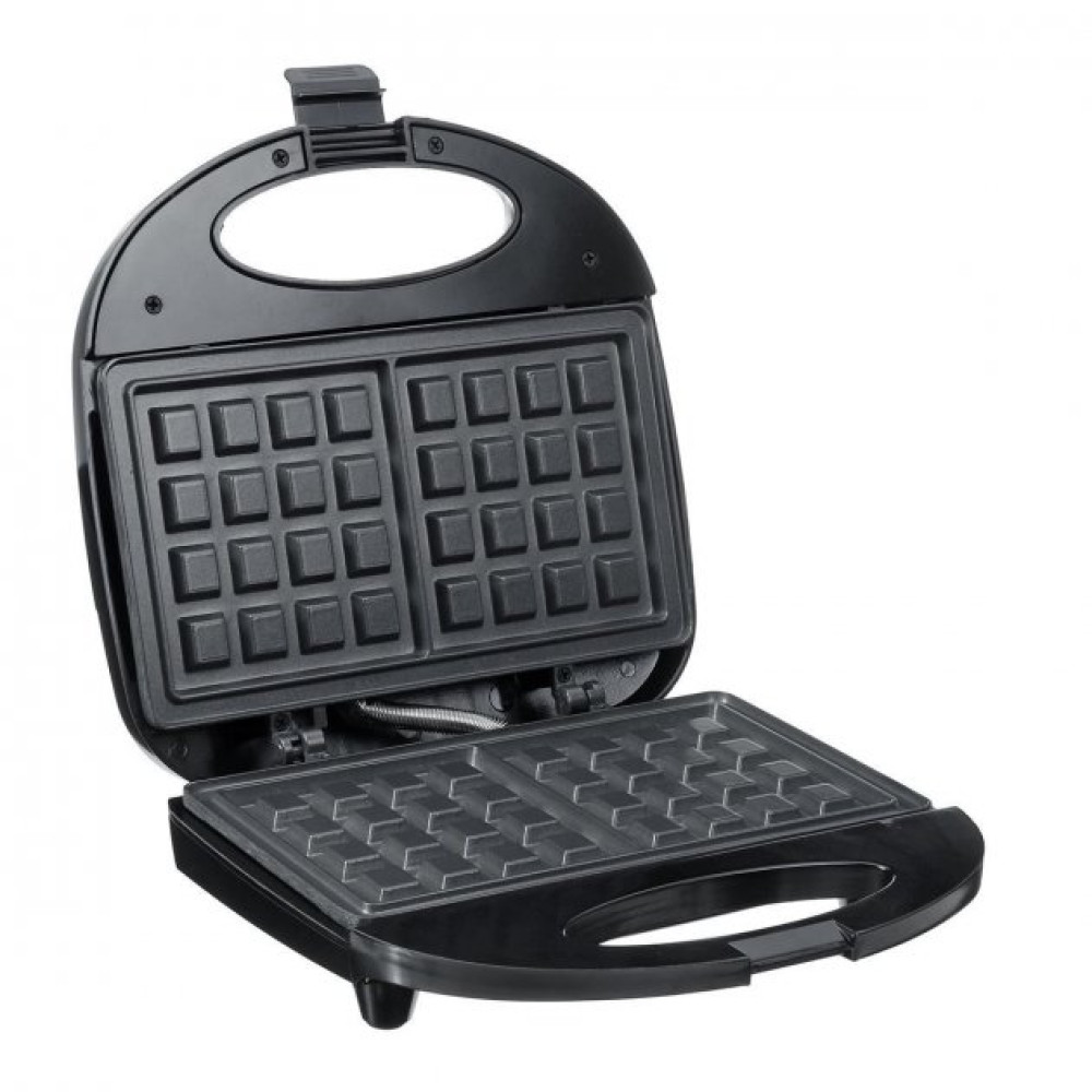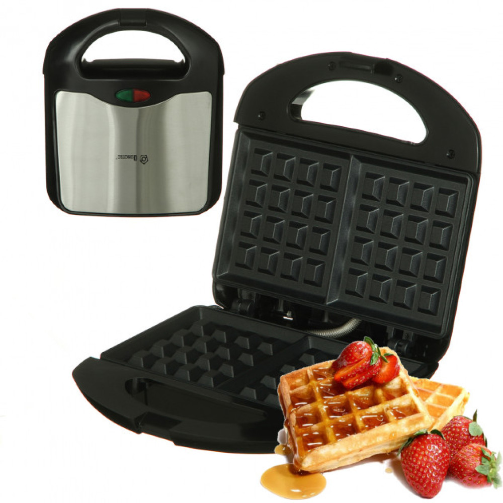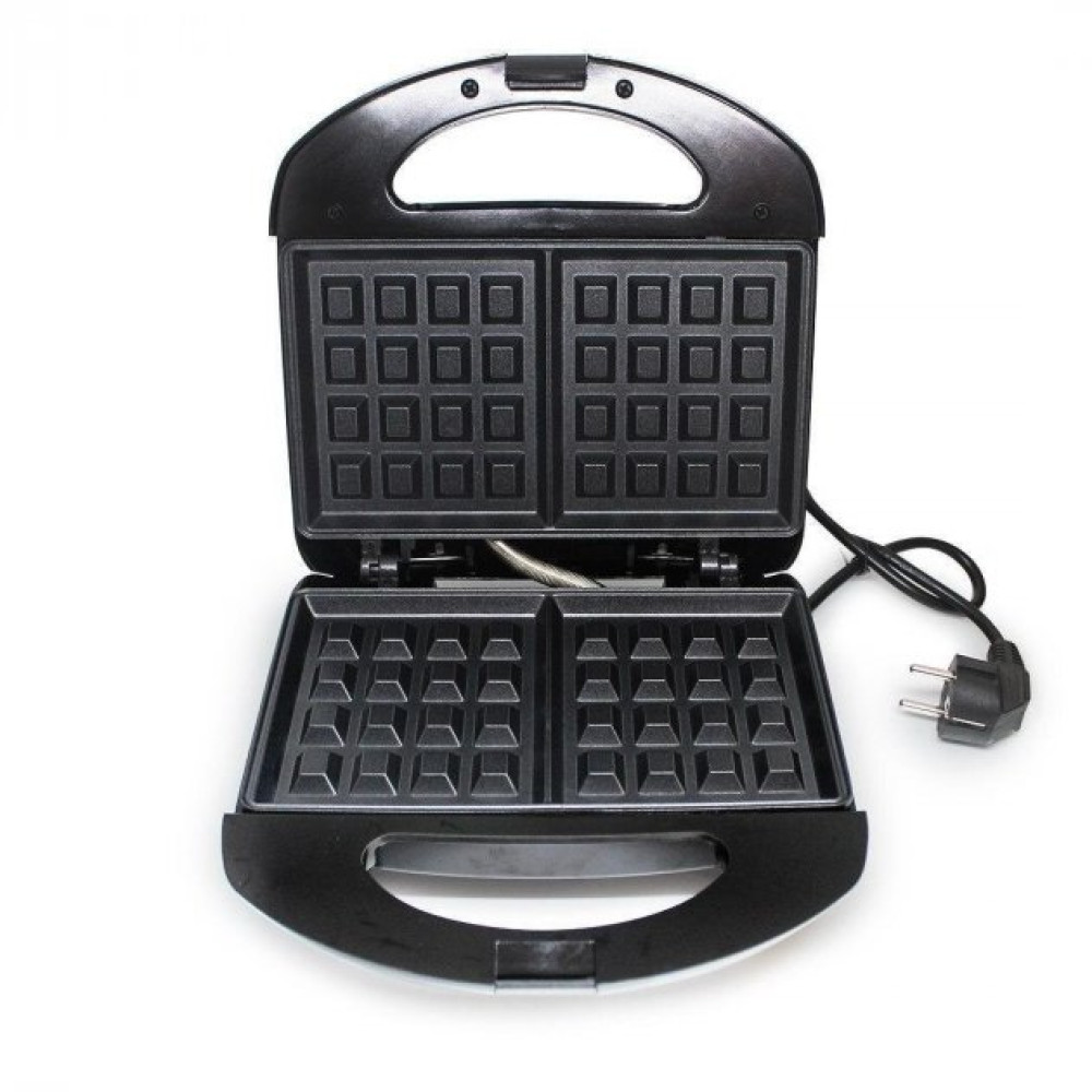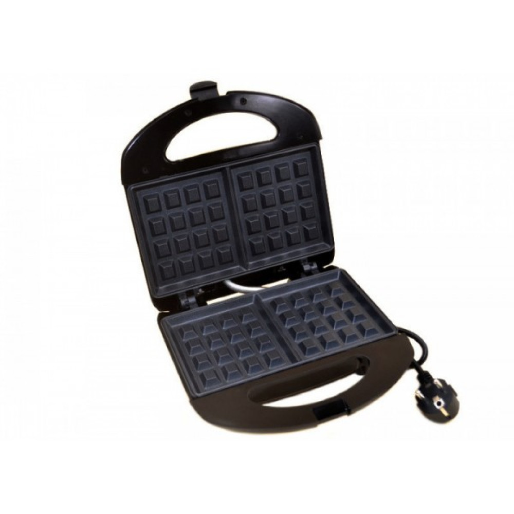 Оснащена пластинами з антипригарним покриттям. Вафлі в ній не підгорають і не прилипають. Індикатор живлення і готовності дозволяють стежити за часом приготування страви.