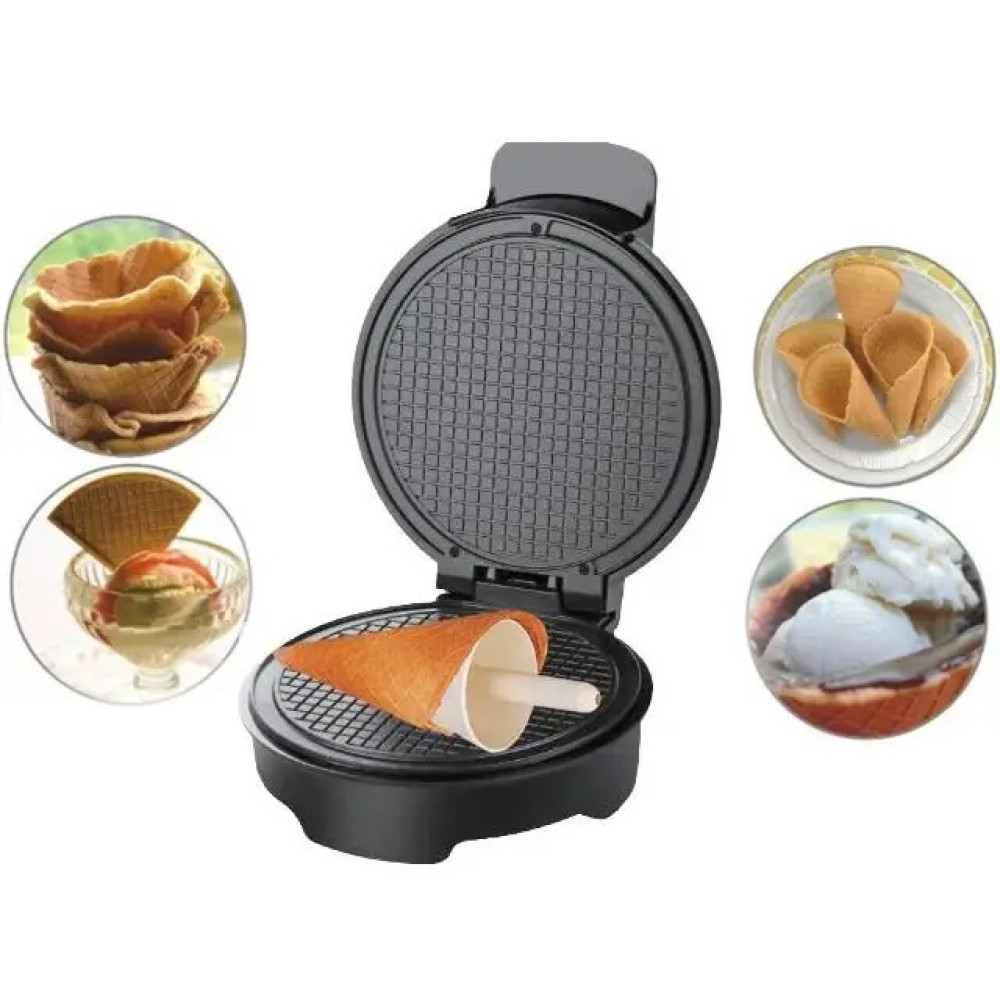 - З нею Ви зможете легко і швидко готувати тонкі вафлі, які можна загорнути в ріжок і наповнити мороженим або смачним кремом, також можна робити трубочки з кремом.