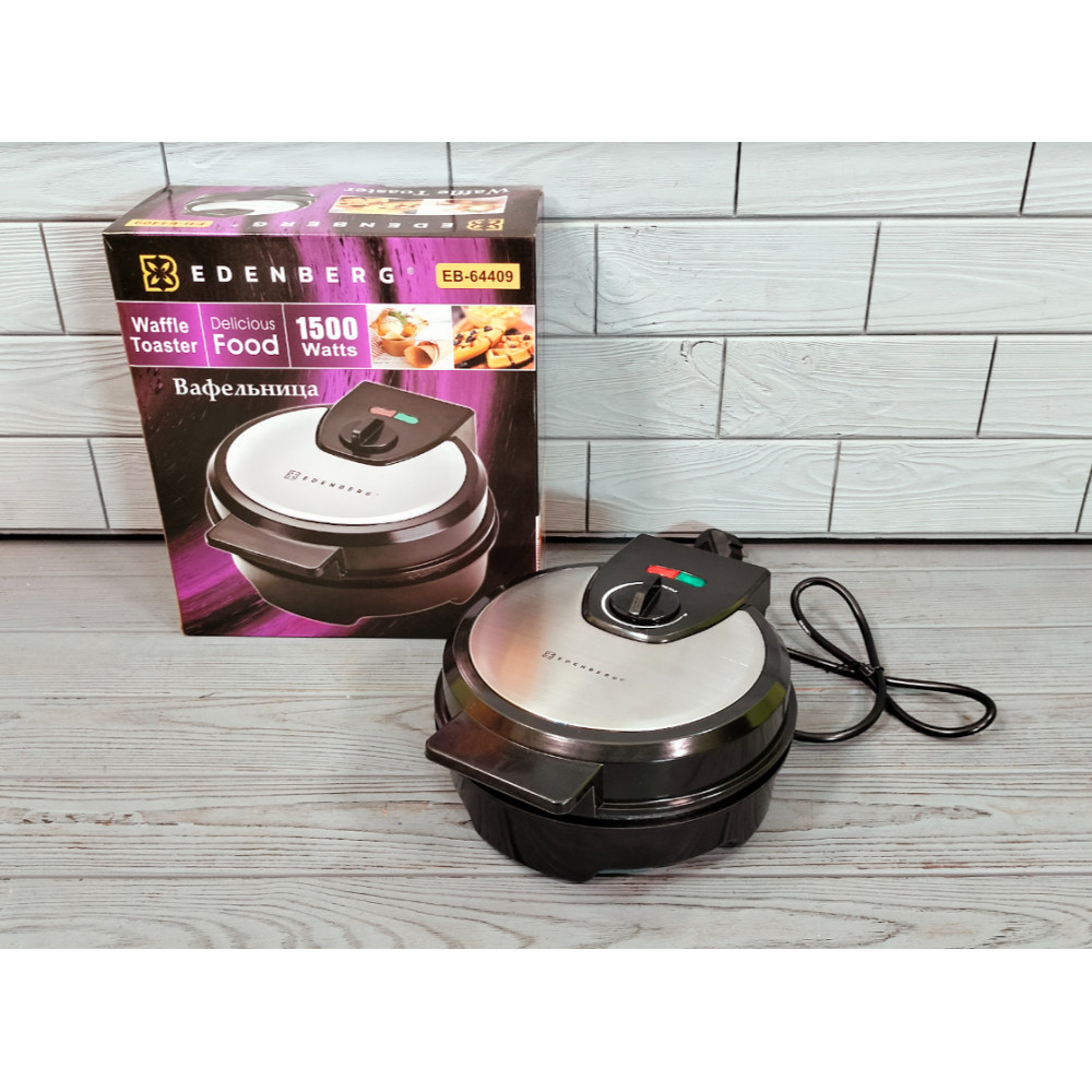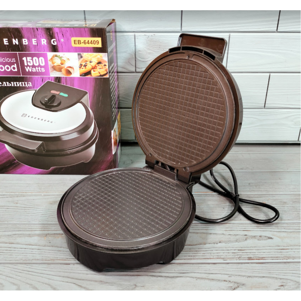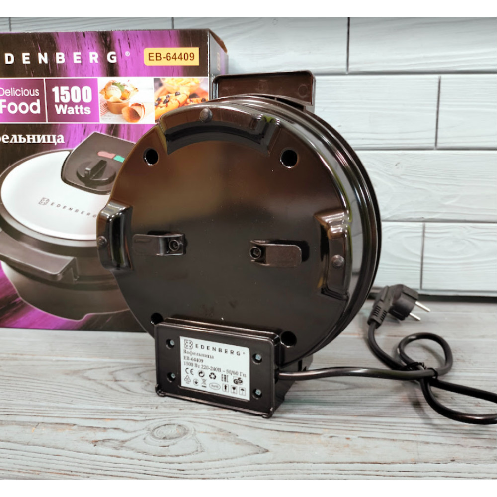 - Вафельниця Edenberg EB-64409 працює з потужністю 1500 Вт, тому швидко справляється із готуванням.