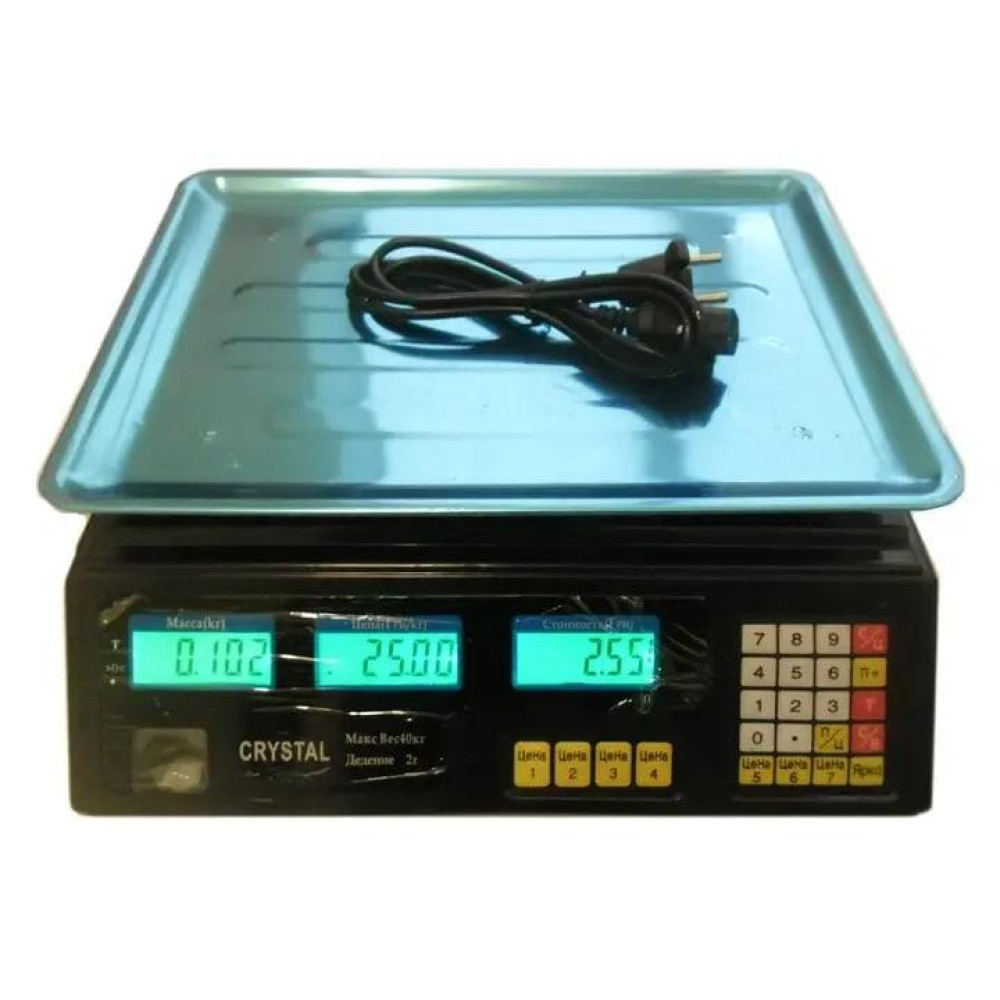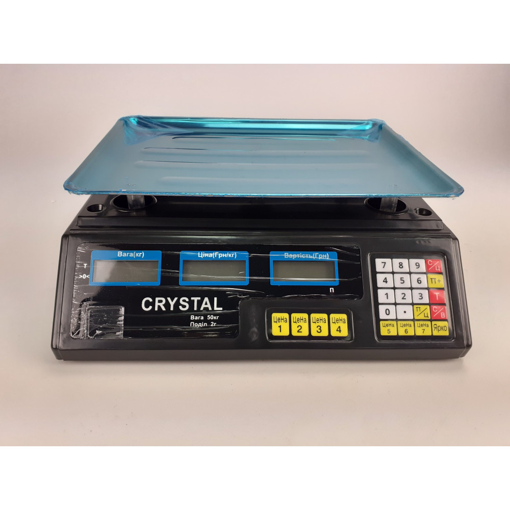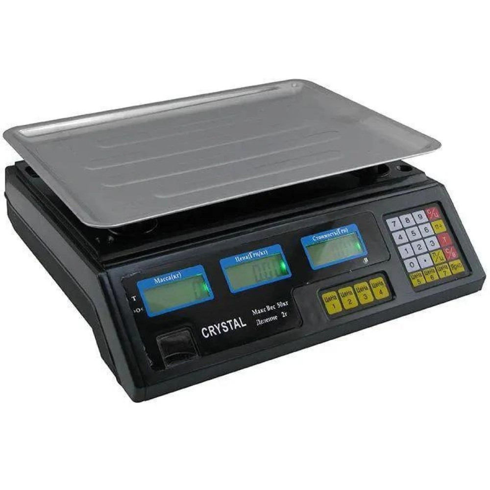 Торгові ваги Crystal із гранично допустимим зважуванням в 50 кг відмінно підійдуть як для роздрібної, так і для оптової торгівлі на ринку або невеликому магазині. Ці електронні ваги з лічильником ціни можуть працювати як від внутрішнього акумулятора 6 В так і від звичайної розетки напругою 220 В. Що дуже зручно і практично в процесі роботи.