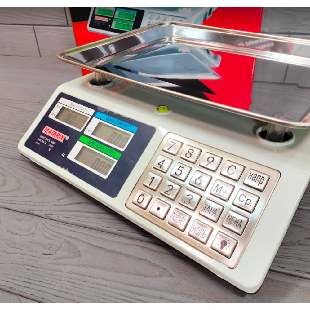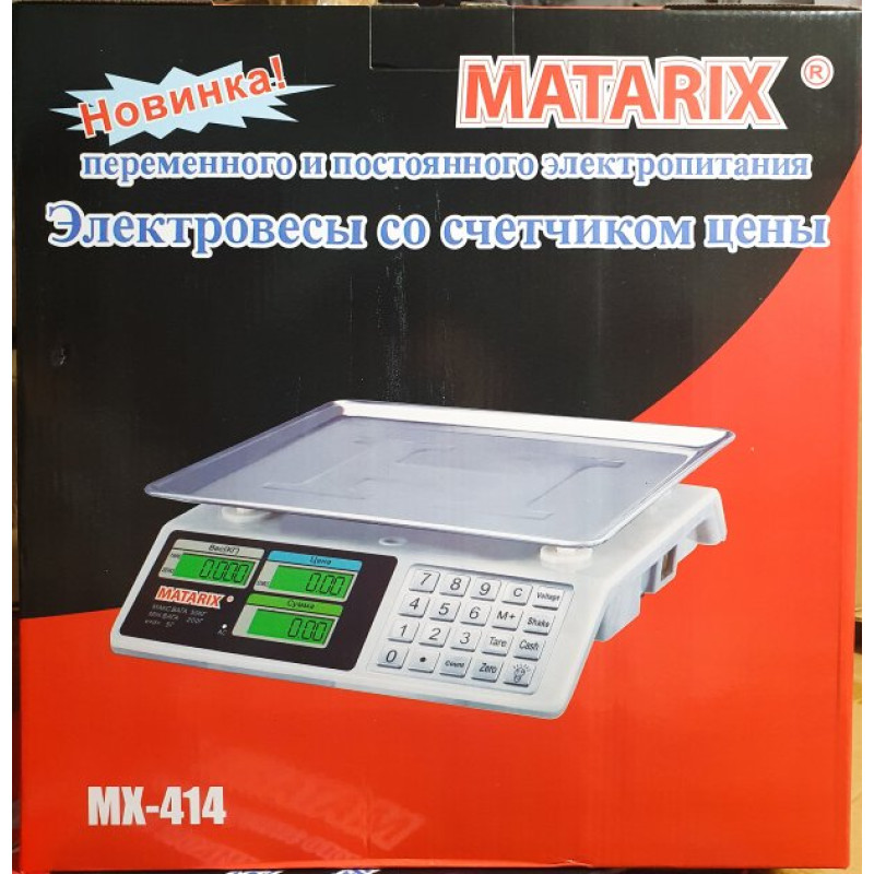 Елегантні торгові ваги MATRIX MX-414 характеризуються якістю виготовлення та прийнятною ціною – що і виділяє їх на ринку вагового обладнання України. Виконані у світлому корпусі із елементами сталі.