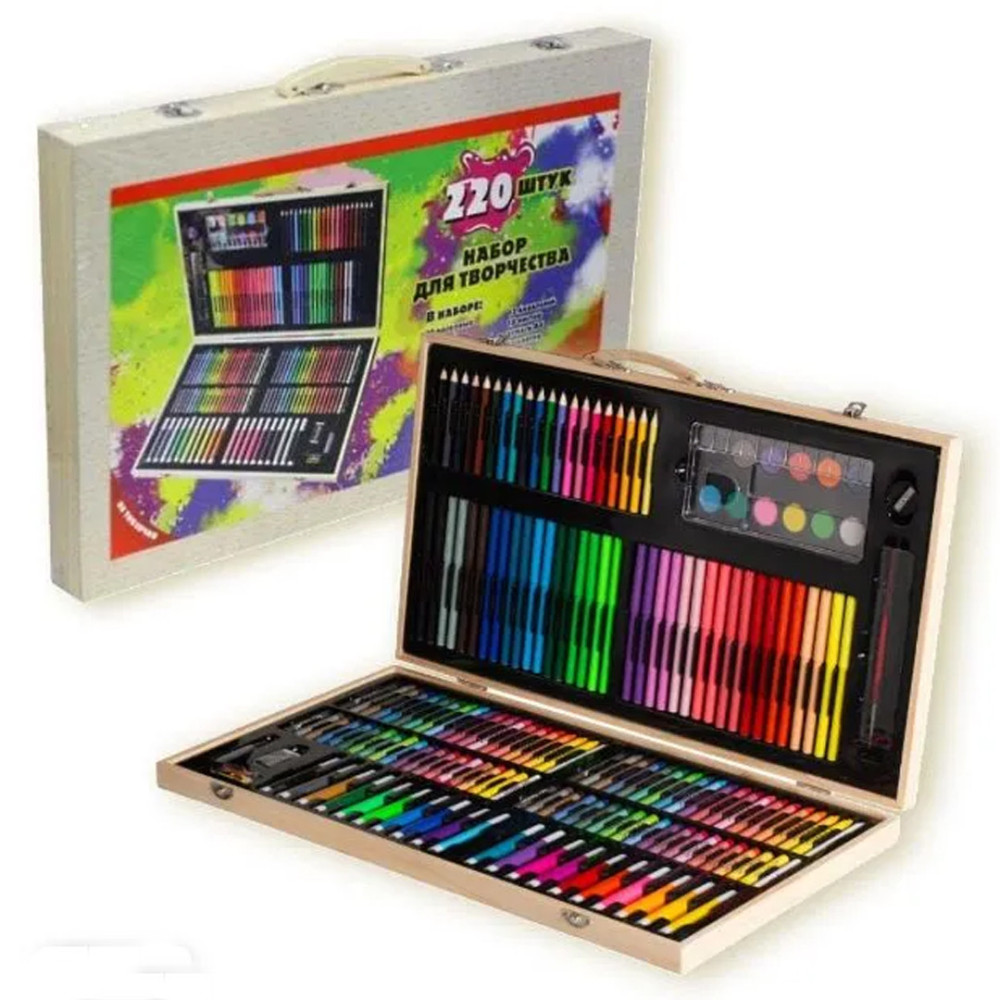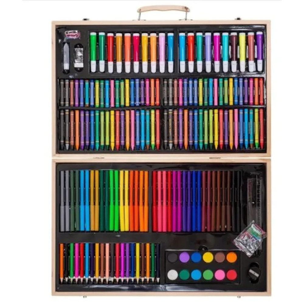 Це ідеальний комплект для розвитку творчих здібностей вашої дитини. У цьому наборі зібрані всі необхідні інструменти для малювання, що дасть змогу юному художнику створювати справжні витвори мистецтва. Олівці, фломастери, фарби, пастель, а також безліч корисних аксесуарів зібрані в зручну дерев'яну валізку, яка допоможе дитині легко організувати свою творчість. Кожен виріб у наборі акуратно розміщений у своїх комірках, що забезпечує порядок і зручність у використанні. Такий набір стане чудовим подарунком для дітей і підлітків, захоплених малюванням і творчістю.