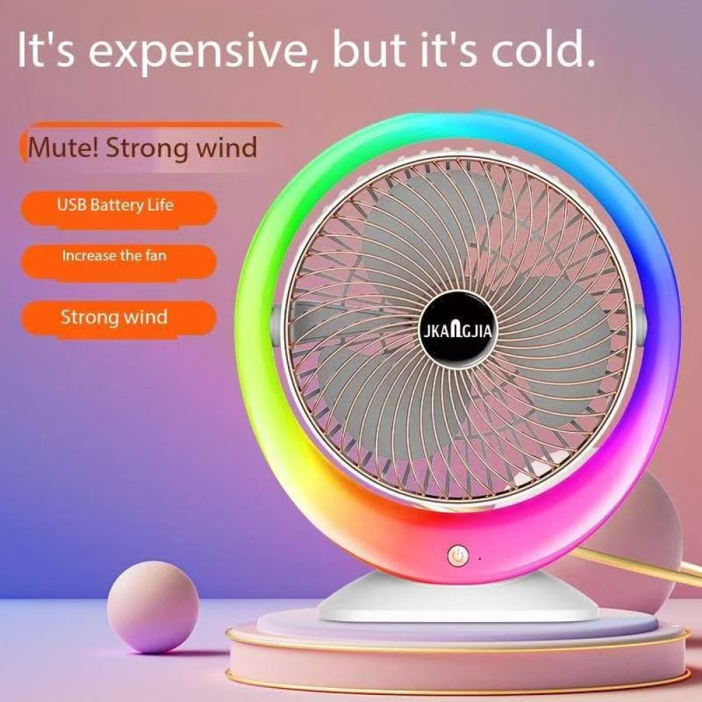 Насолоджуйтесь комфортною прохолодою будь-де з компактним настільним USB-вентилятором. Він працює від вбудованого акумулятора, має тихий мотор і м’яке світлодіодне підсвічування — ідеальне рішення для дому, офісу чи подорожей. Завдяки зарядці через USB ви можете використовувати його з ноутбуком, павербанком або адаптером живлення. Поворотна конструкція дозволяє направляти потік повітря саме туди, де він потрібен.