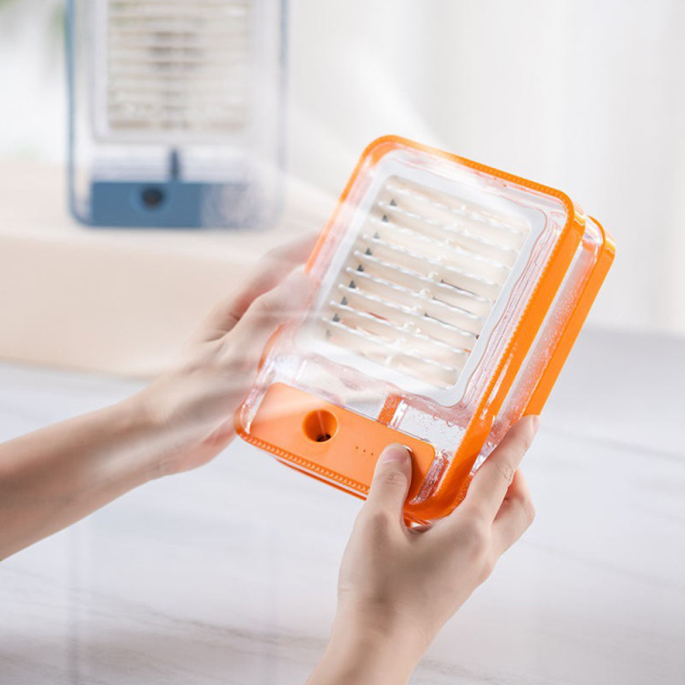 Вам просто потрібно налити трохи крижаної води в резервуар для води, увімкнути персональний міні-вентилятор або використовувати USB-кабель для підключення адаптера, блока живлення, комп'ютера або автомобільного зарядного пристрою, і він охолодить гаряче повітря навколо вас за кілька секунд. що робить його ідеальним для використання у приміщенні та на робочому місці, а також на пікніках на свіжому повітрі та у походах.